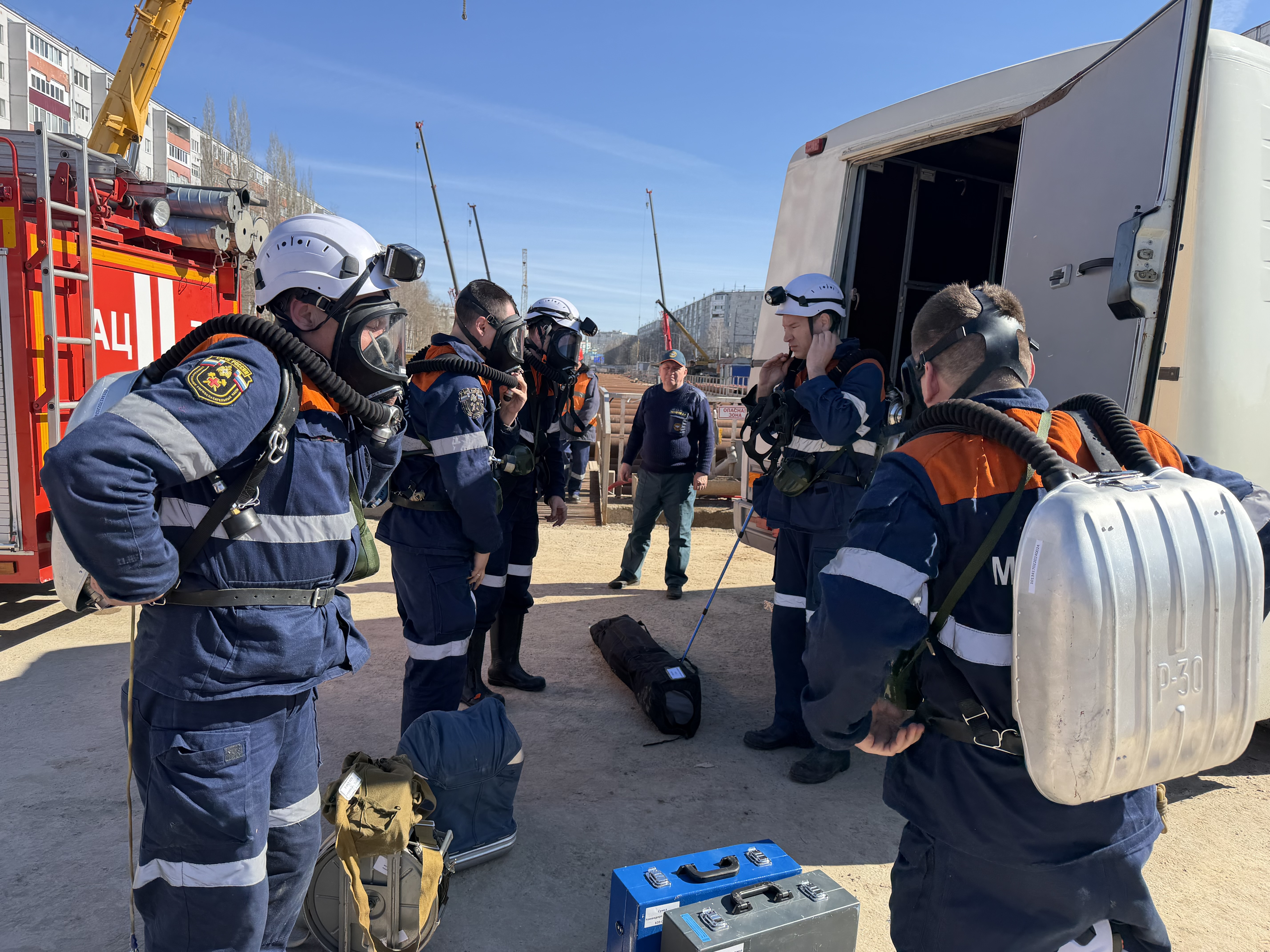 Итоги учений:Результаты проверки подтвердили эффективное взаимодействие подразделений ВГСЧ с членами ВГК и пожарными расчетами. Поставленные задачи выполнены в полном объеме, силы и средства признаны готовыми к обеспечению безопасности на объектах строительства Казанского метрополитена.